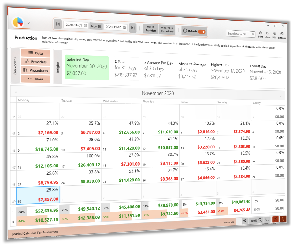 Weekly Totals and Averages: you can now visually see and determine which day of the week is your most productive in terms of any KPI.
